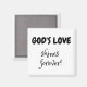Inspirational magnet 5 cm x 5 cm with text "God's love shines forever"