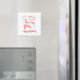 Magnet pour la fête des mères, inscription "bonne fête maman" en écriture enfantine et coeurs sur une feuille de cahier d'école.
