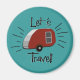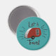 Le design rétro de cet aimant rappelle les publicités imprimées des années 50 et du début des années 60 avec un camper à larmes en rouge et argent vintage et l’expression "Voyons !" À partir de mon numériquement d'origine créé image.