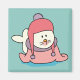 Joli bébé phoque en casquette d'hiver dessin animé avec aimant arrière - plan bleu. Convient comme un cadeau de bureau de Noël et de baby shower faveur entre autres occasions.