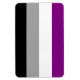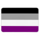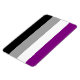 Le drapeau de la fierté asexuel se compose de quatre bandes horizontales : noir, gris, blanc et violet du haut en bas. Le drapeau a été créé par l'utilisateur standup d'AVEN en août 2010, dans le cadre d'un effort communautaire pour créer et choisir un drapeau. La bande noire représente l'asexualité, la bande grise représente les as gris et les désisexuels, la bande blanche représente les alliés et la bande violette représente la communauté.