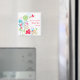 Aimant moderne et coloré avec un thème jardin. Idéal pour les jardiniers ou pour un événement à thème fleuri.