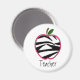 Un aimant pour les enseignants avec une illustration d'une pomme d'impression zébrée noir et blanc avec garniture rose. Texte personnalisable en dessous : "Enseignant". Recherchez d'autres articles de pomme zébrés dans la catégorie "Pommes" du magasin The Pink Schoolhouse.