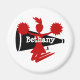 Aimant de pom pom pom pom pom girl avec mégaphone et pom-pom girl cheer en rouge, blanc et noir. Customisez avec votre nom et le nom de votre école, modifiez le texte ou supprimez le texte. La couleur arrière - plan peut être changée ou d'autres choix de couleurs sont disponibles. Grand cadeau ou rembourrage pour la pom-pom girl dans votre vie. Achetez en gros et laissez passer au rassemblement pep!