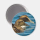 Plumage d'hiver mâle et femelle Couleur d'Eider commun dans l'océan Atlantique au large de Sandy Hook, New Jersey reproduit sur un aimant frigo rond.