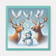 Portant un Toboggan Turquoise et un Ecarf, un Snowman à nez de carotte se tient au milieu de Deux Cerfs de Male regardant dans une Neige Profonde, avec des bulles transparentes flottantes multicolores tandis que trois Doves de Tortue Blanche survolent. Le tout dans un arrière - plan bleu neigeux.