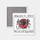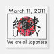 "Kessoku" le caractère kanji japonais pour Unity sur un globe rouge suggérant le drapeau japonais. Avec la date tragique du 11 mars 2011 et la devise "Nous sommes tous Japonais".