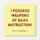 L'enseignant dit : "Je possède des armes d'instruction de masse !" en lettres rouges. (Je suis enseignant.) en noir. Modifiez la couleur arrière - plan ainsi que la police de texte et les couleurs de texte !