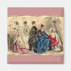 Art vintage avec peinture de dames habillées de robes de boules à un point d'observation dans la campagne.