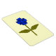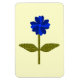 Cet aimant impressionnant est doté d'une image numérique d'une marguerite avec une tige verte avec deux feuilles verts et des pétales de couleur claire et bleu foncé avec un centre bleu clair. L'arrière - plan est jaune soleil.