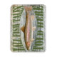 Un aimant décoratif pour le pêcheur dans votre vie. "Tall fish tales told here" avec une image détaillée d'une truite arc-en-ciel sur un arrière - plan rustique en bois patiné.