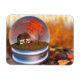 À l'intérieur d'un "globe de neige" se trouve un paysage d'automne avec un chalet ombragé d'érables et de cerisiers. Le champ environnant est rempli de hautes herbes vertes et dorées. Roses et lierre grimpent le mur de la petite maison. L'érable est d'une brillante couleur d'automne, et au lieu de la neige, il y a des feuilles d'érables dans les tons rouge, orange et jaune qui tourbillonnent autour du globe et qui blanchissent l'herbe.