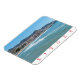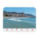 Une belle vue sur la mer au large de la ville de Sitges en Espagne avec l'église de Sant Bartomeu et Père Noël Tecla dans l'arrière - plan imprimé sur un aimant frigo souvenir.
