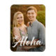 Aimant de vacances tropical moderne affichant votre photo verticale à fond de sang avec "Aloha" dans un script blanc écrit à la main, complété par un palmier dessiné à la main. Personnalisez l'avant de l'aimant photo de vacances Aloha en ajoutant votre nom. Conçu pour coordonner avec notre collection de vacances Aloha Palm Tree.