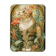 Un chaton majestueux à la fourrure luxuriante et détaillée se dresse gracieusement au milieu d'un agencement orné de fleurs et de vignes tourbillonnantes, le tout encadré dans un design complexe de style Art Nouveau. Le chat regarde vers le haut avec une sagesse sereine, baigné de lumière dorée douce, tandis que l'arrière - plan fleurit avec des tons pastel et terre riches, créant un sentiment de beauté intemporelle et d'élégance naturelle.