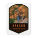 Un badge de voyage vintage design du parc national Kakadu, une zone protégée et un site du patrimoine mondial situé dans la région des rivières Alligator du Territoire du Nord de l'Australie.