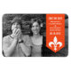 Bannière moderne et élégante Chic Flourish Photo Save the Date Magnet avec une bannière flèche en orange ornée d'une simple décoration de fleur de lis. Cette classe enregistrer l'aimant de date est parfait pour annoncer votre prochain mariage. Facile à customiser, ajoutez simplement vos propres photos et détails mariages. Cliquez sur "Customiser" pour trouver d'autres options de personnalisation.