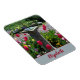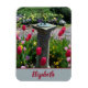 A beautiful flower garden, this magnet feclause pretty pink, lilac and yellow flowers surrounding a lovely statue. Customize your name at the bottom. Le Yours today !