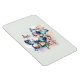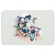 Un aimant flexible avec un trio de papillons flottant parmi de jolies fleurs. Couleurs bleu rose et vert.