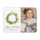 Envoyez vos salutations de vacances à vos proches avec notre bel aimant de vacances photo. L'élégant aimant de vacances est doté d'une couronne de vacances aquarelle composée de pinèdes, de cônes de pin et de feuilles verts accrochés au ruban beige clair. L'expression "Joyeux Noël" est affichée ci-dessous dans un script de calligraphie noir et moderne. Personnalisez l'aimant de Noël en ajoutant votre nom, l'année et une photo.