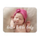 Annoncez la naissance de votre petite fille avec un bel aimant photo "Hello Little Lady". L'élégant aimant photo faire-part de naissance dispose d'une superposition avec les mots "Hello Little Lady" dans une police de script de brosse et des espaces réservés pour une photo et du texte personnalisé.