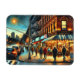 Un cadeau parfait pour les amateurs de voyage et de café. La peinture à l'aquarelle représentant une scène quotidienne du soir dans un petit café du Bronx, New York. L'image capture la vie de rue animée avec des piétons de diverses apparences, certains entrant ou sortant du café chaleureusement éclairé sur un fond de paysage urbain faible. L'aspect vintage du café, avec ses briques apparentes et ses décorations surannées, illuminé par des lumières ambrées et entouré par les teintes foncées du crépuscule, crée une atmosphère cosy et urbaine.