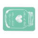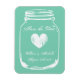 Campote rustique en maçon chic Sauvez l'aimant de la date avec le coeur mignon. Vintage country chic mason jar Magnet Réservez la date pour la fête de mariage. Design vert menthe mignon personnalisé avec le nom de la mariée et du marié plus la date du mariage. Couleur arrière - plan personnalisable. Parfait pour le jardin extérieur rustique / grange mariage en été, juin, juillet, août, septembre. Élégante typographie stylée. Icône coeur défraîchi. Un style de grunge patiné un peu déprimé. Des aimants frigo classiques pour bientôt être marié couple en train de nouer le noeud.