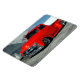 Camion rouge classique customisé garé devant le body shop en Floride, USA.
