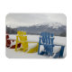DROIT D'AUTEUR Cindy Miller Hopkins / DanitaDelimont.com | CN01 CMI0065.jpg | Canada, Alberta, Jasper, Jasper NP. Fairmont Jasper Park Lodge. Chaises colorées autour du lac gelé, Lac Beauvert.