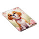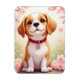 Cette charmante illustration présente un chiot irrésistiblement mignon avec des yeux étincelants et étincelants et un doux sourire. Le chiot, avec sa fourrure molle brun et blanche, porte un collier rouge vif orné d'une étiquette, ajoutant une touche de personnalité et de chaleur. Installé au calme au milieu d'un jardin serein aux délicates fleurs de cerisiers roses, le chiot regarde doucement vers l'avant, évoquant un sentiment de paix et de joie. L'arrière - plan doux et pastel et la douce lumière créent une atmosphère onirique et conte, parfaite pour évoquer des sentiments de sérénité printanière et d'affection douce. Cette scène chaleureuse est idéale pour les illustrations de livres pour enfants, les cartes de voeux, ou même les modèles de vêtements qui visent à répandre le bonheur et le charme.