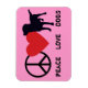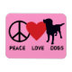 Ce produit personnalisable Peace Love Dogs avec une silhouette de paix, de coeur et de chien fait un cadeau unique pour les propriétaires et les amateurs de chiens. Customisez ou personnalisez le design Achetez cet élément tel quel ou customisez le texte avec une police, une couleur ou une taille différentes, ou ajoutez une image. Design ©2011 Gratzer Graphics LLC.