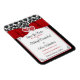 Si vous avez trouvé l'amour de votre vie et que vous souhaitez inviter tous vos proches à être témoins de l'union de vos deux vies et de vos cœurs, alors ce joli faire-part de mariage magnétique noir et blanc à motif damassé avec des cœurs entrelacés sur un ruban rouge et un nœud en image traversant le haut est un excellent moyen d'annoncer vos prochaines noces. Il présente un motif de fond damassé noir et blanc au-dessus du ruban avec les détails du mariage imprimés en dessous du ruban sur fond blanc en lettrage noir et rouge avec quatre fioritures d'angle noires qui correspondent au faire-part de mariage. Si vous avez besoin d'aide ou si vous souhaitez un faire-part magnétique plus grand, veuillez envoyer votre demande à niteowlstudio@gmail.com ou utilisez la fonctionnalité de chat Zazzle pour nous contacter.