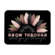 Cette conception comporte une image de demi-tournesol avec l'expression "pousser à travers ce que vous traversez" en dessous. Le texte et la police peuvent être customisés, et l'image peut être ajustée en fonction de la taille et du placement.