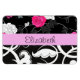 Magnet Flexible Damas, Fleurs, Noir et Blanc, Votre nom