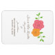 Élégant et moderne In Bloom Floral Enregistrer la date Premium Flexi Magnet avec une illustration avec une belle paire de fleurs en rouge et orange flanquée d'un éventail de vignes vertes vibrantes. Cet élégant savourez l'aimant de date est parfait pour annoncer un mariage de printemps ou d'été. Facile à customiser, il suffit d'ajouter les détails de votre mariage dans les champs de texte fournis. Cliquez sur "Customiser" pour trouver d'autres options de personnalisation.