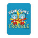 Regardez ce graphique amusant de Thing One and Thing Two qui s'affiche avec les mots : "Here Comes Trouble" !