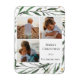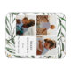 Elégante Carte de vacances minimaliste Florale Vert Foliage Or Confetti Aquarelle Florale. Envoyez des voeux et des salutations à vos proches avec cette carte de vacances minimaliste et moderne. Un beau cadre de feuilles d'aquarelle peints en vert doux, entouré de flocons de confettis dorés devant. Le milieu dispose de trois de vos photos de famille préférées dans une simple mise en page collage avec votre message de bienvenue personnalisé. Tous les textes sont pré-arrangés pour que vous personnalisiez facilement et rapidement avec vos propres détails.