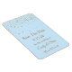 Cet aimant flexible Save the Date est affiché dans une couleur bleu clair avec de petites étoiles dorées. Customisez ce point et modifiez le texte à votre place avec ce modèle.