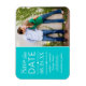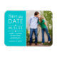 La conception moderne de l'aimant de faire-part de mariage avec photo comprend une typographie mixte avec des bords festonnés et des accents de coeur. Personnalisez avec vos détails de mariage et une photo de fiançailles préférée. Couleur bleu turquoise / aqua.