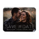 Un aimant de faire-part moderne affichant votre photo de fiançailles préférée avec "Save the Date" dans une simple police blanche superposée, complétée par une élégante écriture calligraphique. Personnalisez l'aimant de faire-part photo en ajoutant vos noms, date de mariage et lieu de mariage.