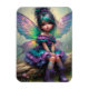 " Fée Fleur de Fleur de Fleur de Fleur de Fleur de Fleur de Fleur de Fleur de Fleur de Fleur de Fleur" Une fille fantasque aux ailes de papillon scintillantes se dresse gracieusement sur une rondelle lisse dans une forêt enchantée. Sa robe feutrée mêle les riches tons violets, turquoises et lilas, avec ses cheveux rayés et ses ailes scintillantes. L'atmosphère magique est remplie de fleurs éclatantes et de lumière rêveuse, capturant la beauté sereine d'une forêt de crépuscules.