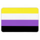 Le drapeau non-binaire a été créé en 2014 par l'activiste Kye Rowan. Chaque couleur de bande représente différents types d'identités non-binaires : Jaune pour les personnes qui s'identifient en dehors du binaire de genre, blanc pour les personnes non-binaires avec plusieurs sexes, violet pour celles avec un mélange de sexe masculin et féminin, et noir pour les individus de genre.