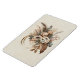 Aimant flexible avec un joli bouquet de fleurs de pêche, entouré de bronze brunâtre et de feuillage aux accents de plume. Un arrière - plan de couleur crème brun clair avec un motif damassé.
