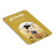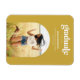 Cet aimant de graduation moderne est doté d'une typographie branchée, d'une photo voûtée et d'une palette de couleurs jaune et blanc éclatante. Le mot "Graduate" est écrit en caractères gras et modernes, avec le nom du diplômé, l'école et l'année de diplôme ci-dessous. La moitié inférieure de la carte est dotée d'un cadre photo voûté.