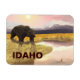 Un tableau numérique d'un ours grizzli s'approchant d'un étang tandis que le soleil descend au-dessus de montagnes lointaines. Le texte "Idaho" est également présent.