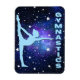 Galaxy Gymnastique design avec étoiles blanches, voie laiteuse, bleu clair poudreux silhouette féminine gymnaste et dit gymnastique dans la forme verticale.