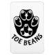 Une patte noire avec des haricots noirs comme orteils, avec le texte "Fèves d'orteil", sous la patte.
