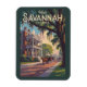 Conception de voyage rétro de Savannah. Savannah, Géorgie, est une ville historique du Sud connue pour ses rues bordées de chênes, son architecture antébellum et son charme côtier.