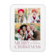 Aimant de vacances simple et élégant avec un collage photo de 3 avec "Joyeux Noël" affiché en lettrage moderne couleur vin. Personnalisez l'aimant photo de Noël en ajoutant vos photos et votre nom.