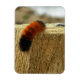 Une chenille d'ours laineux floue sur un poteau en bois. Photo prise à North Ridgeville, Ohio.